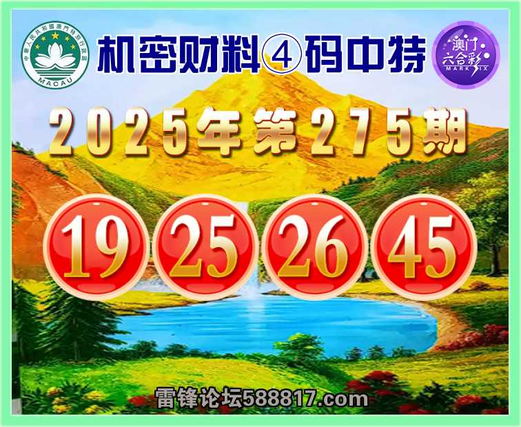 275期:《机密财料》 🏆④码中特🏆【19.25.26.45】开:45