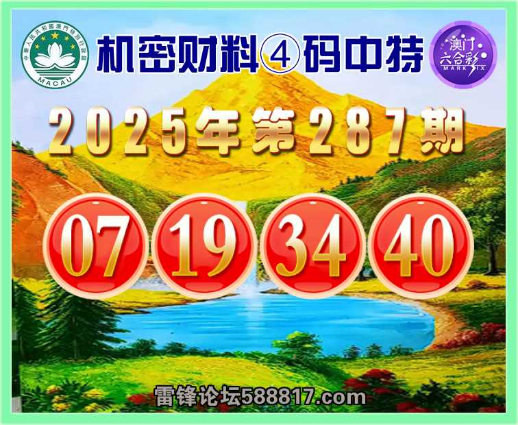 287期:《机密财料》 🏆④码中特🏆【07.19.34.40】开:00准