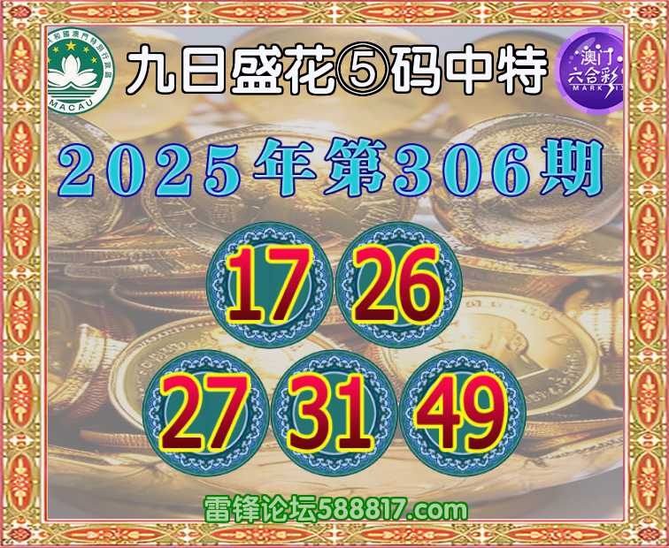 306期:『九日盛花』 🧤⑤码中特🧤【17.26.27.31.49】开:17