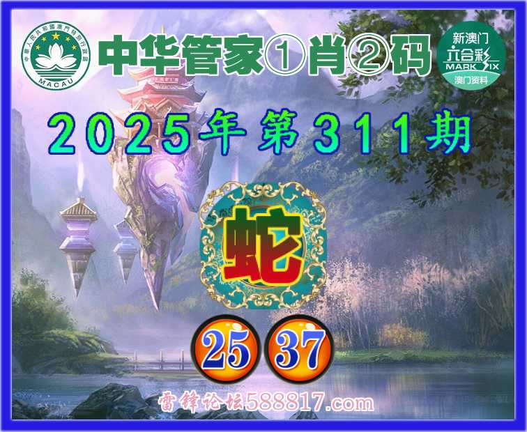 311期:『中华管家』 🀄①肖②码🀄【】【25.37】开:蛇37