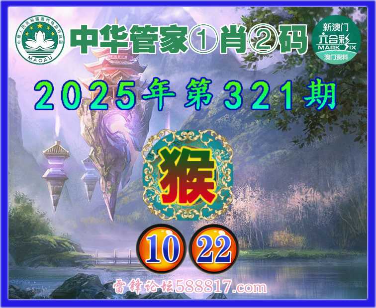 321期:『中华管家』 🀄①肖②码🀄【猴】【10.22】开:羊23