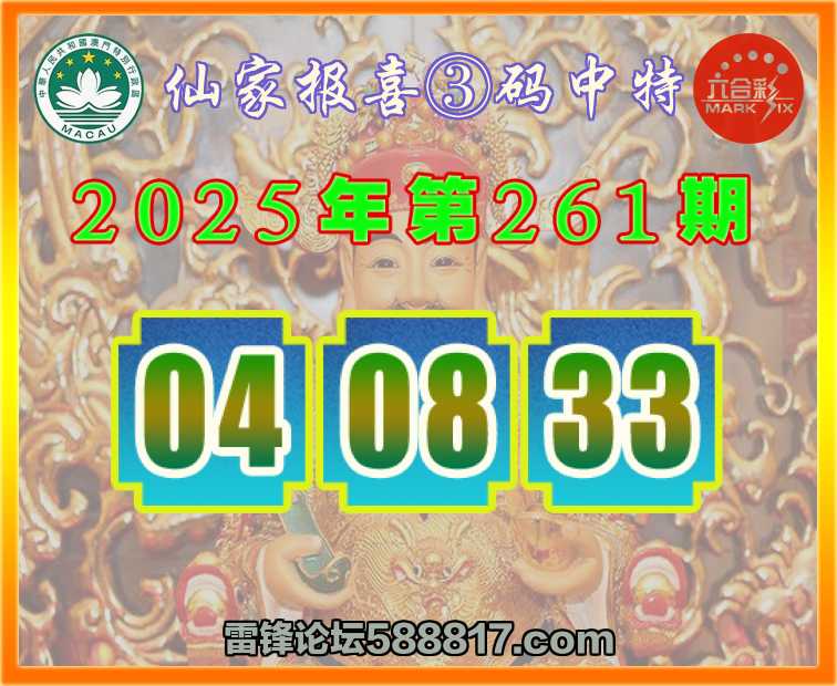 261期:【仙家报喜】③码中特✨【04.08.33】开:33