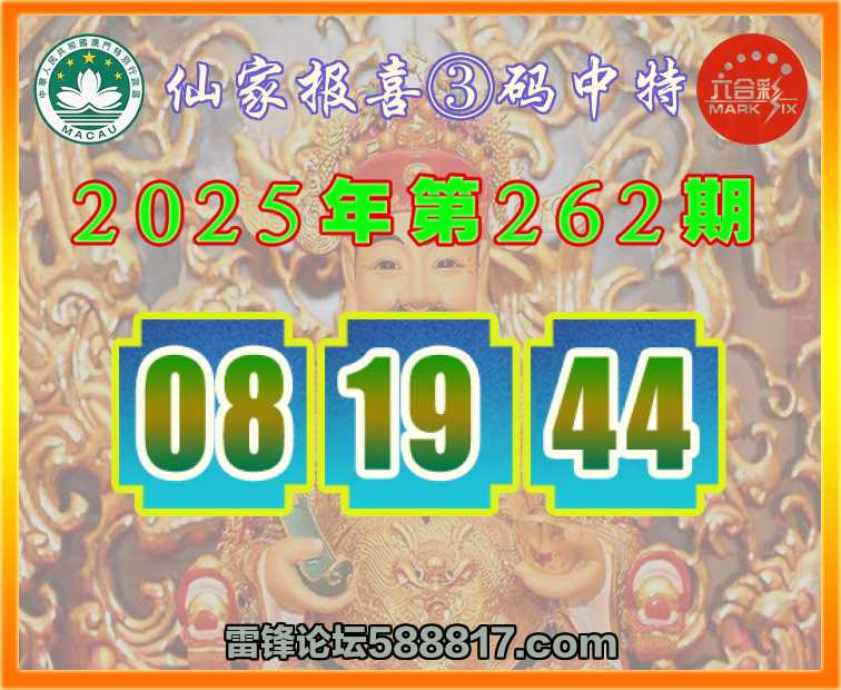 262期:【仙家报喜】③码中特✨【08.19.44】开:44