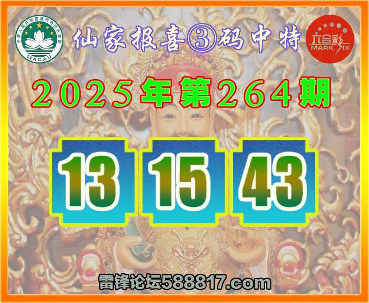 264期:【仙家报喜】③码中特✨【13.15.43】开:43