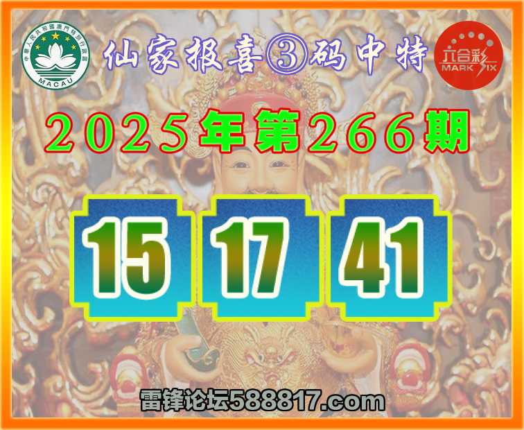 266期:【仙家报喜】③码中特✨【15.17.41】开:41