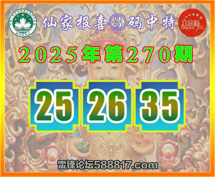 270期:【仙家报喜】③码中特✨【25.26.35】开:35