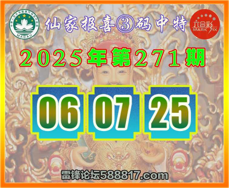 271期:【仙家报喜】③码中特✨【06.07.25】开:06