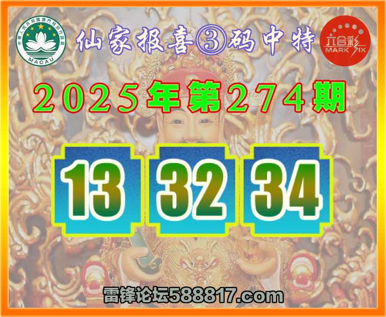 274期:【仙家报喜】③码中特✨【13.32.34】开:44