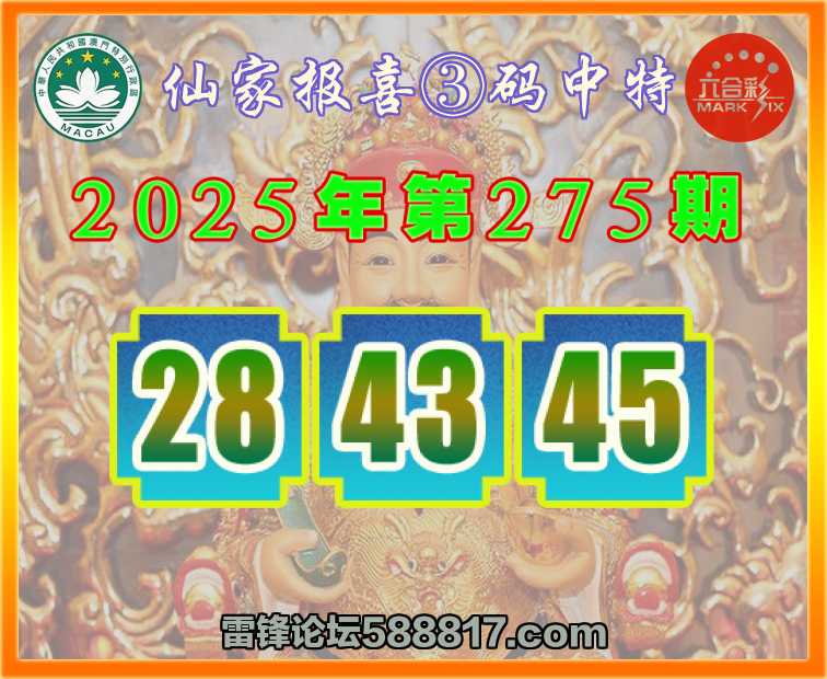 275期:【仙家报喜】③码中特✨【28.43.45】开:45