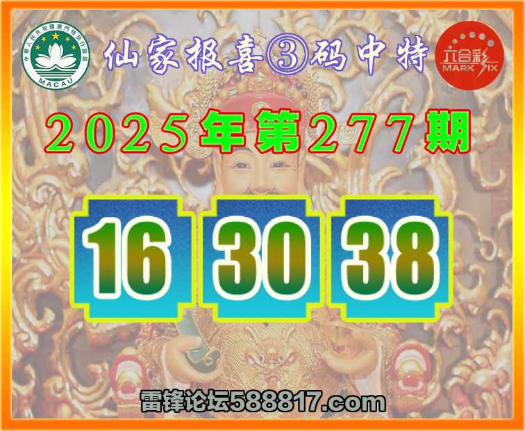 277期:【仙家报喜】③码中特✨【16.30.38】开:16