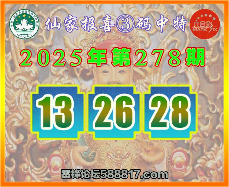 278期:【仙家报喜】③码中特✨【13.26.28】开:28