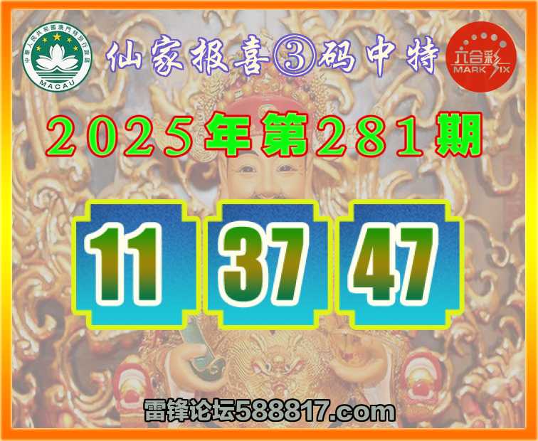 281期:【仙家报喜】③码中特✨【11.37.47】开:47