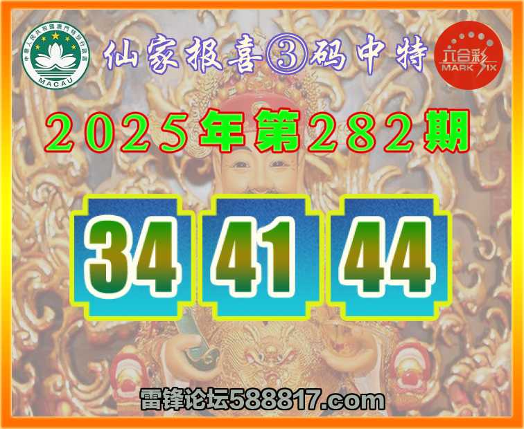 282期:【仙家报喜】③码中特✨【34.41.44】开:41
