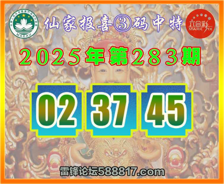 283期:【仙家报喜】③码中特✨【02.37.45】开:45