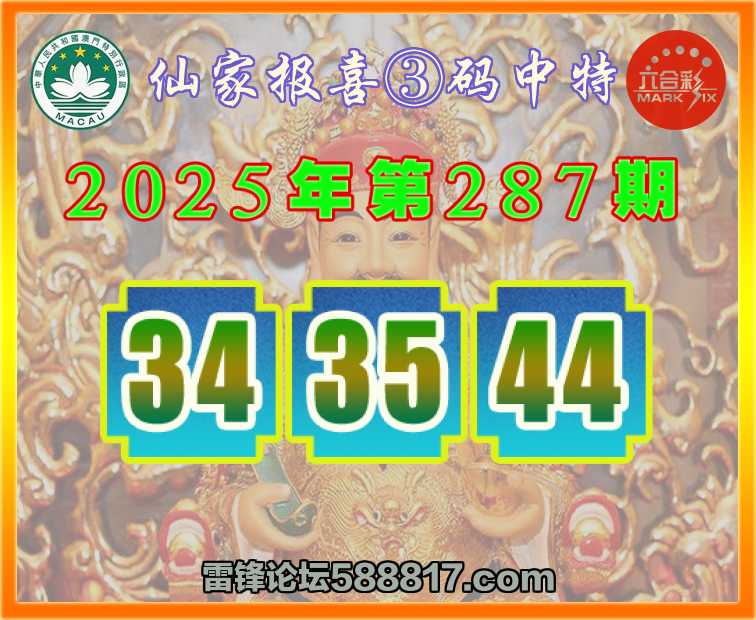 287期:【仙家报喜】③码中特✨【34.35.44】开:00准