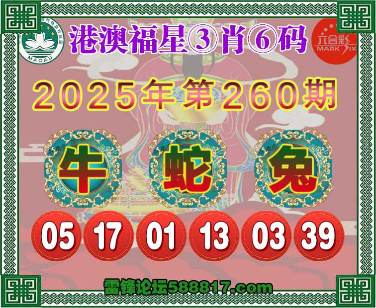 260期:〖港澳福星〗 🩴③肖⑥码🩴【牛蛇】开:兔03