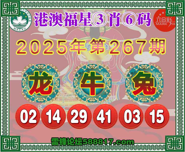 267期:〖港澳福星〗 🩴③肖⑥码🩴【龙兔】开:牛29