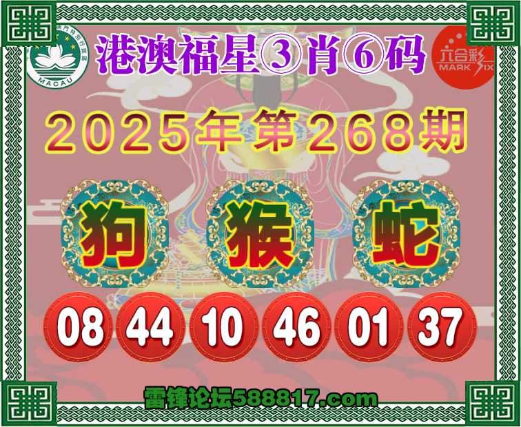 268期:〖港澳福星〗 🩴③肖⑥码🩴【狗蛇】开:猴10
