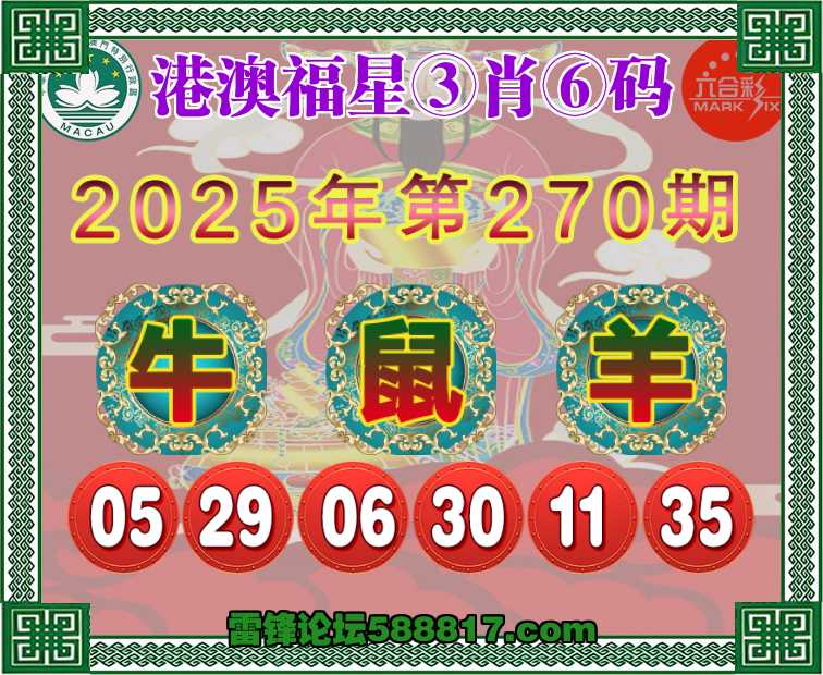 270期:〖港澳福星〗 🩴③肖⑥码🩴【牛鼠】开:羊35