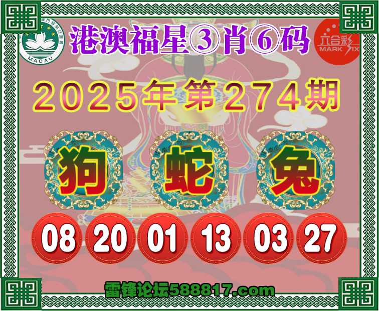 274期:〖港澳福星〗 🩴③肖⑥码🩴【蛇兔】开:狗44