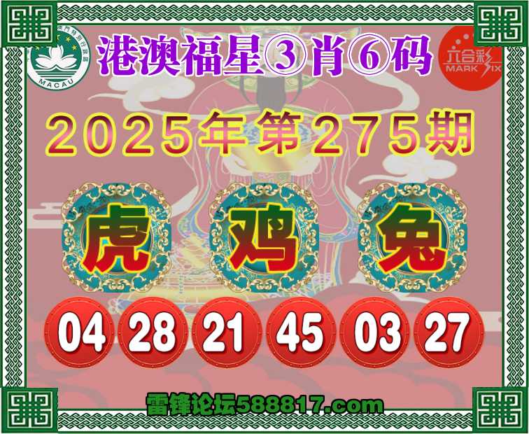 275期:〖港澳福星〗 🩴③肖⑥码🩴【虎兔】开:鸡45