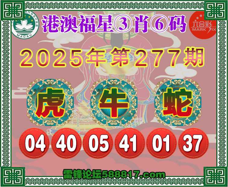 277期:〖港澳福星〗 🩴③肖⑥码🩴【牛蛇】开:虎16