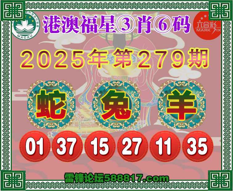 279期:〖港澳福星〗 🩴③肖⑥码🩴【蛇羊】开:兔27