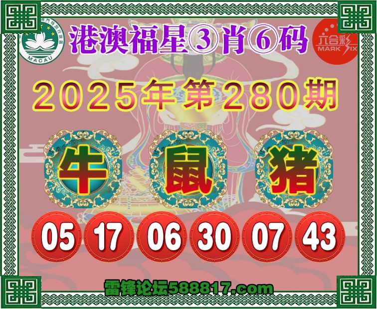 280期:〖港澳福星〗 🩴③肖⑥码🩴【牛猪】开:鼠42