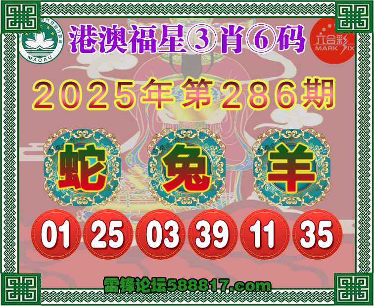 286期:〖港澳福星〗 🩴③肖⑥码🩴【蛇羊】开:兔03