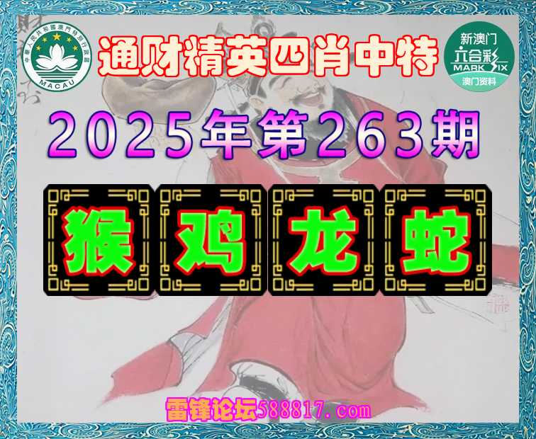 263期: 🍔『通财精英』 🍔四肖中特🍔【猴.鸡..蛇】开:龙38