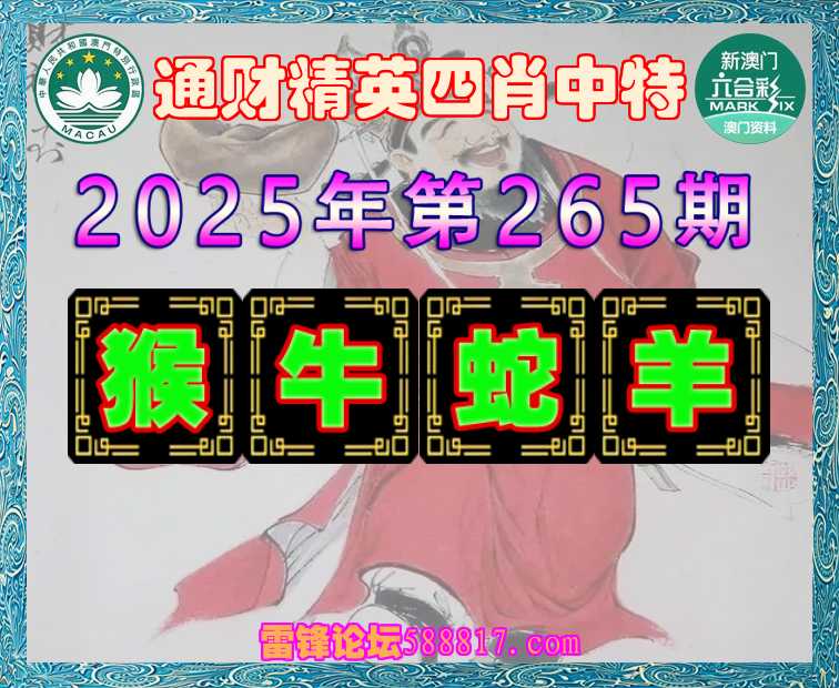 265期: 🍔『通财精英』 🍔四肖中特🍔【.牛.蛇.羊】开:猴10