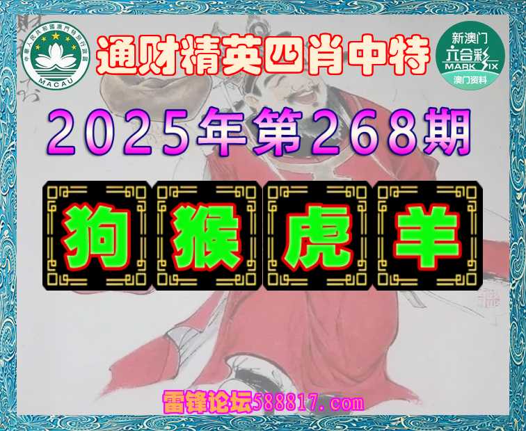 268期: 🍔『通财精英』 🍔四肖中特🍔【狗..虎.羊】开:猴10