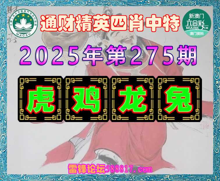 275期: 🍔『通财精英』 🍔四肖中特🍔【虎..龙.兔】开:鸡45