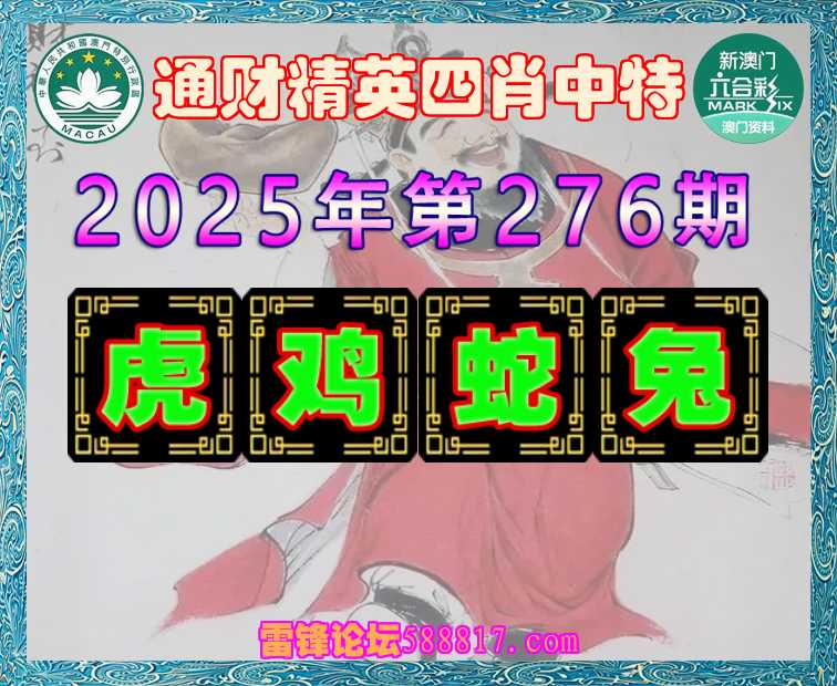 276期: 🍔『通财精英』 🍔四肖中特🍔【虎..蛇.兔】开:鸡09