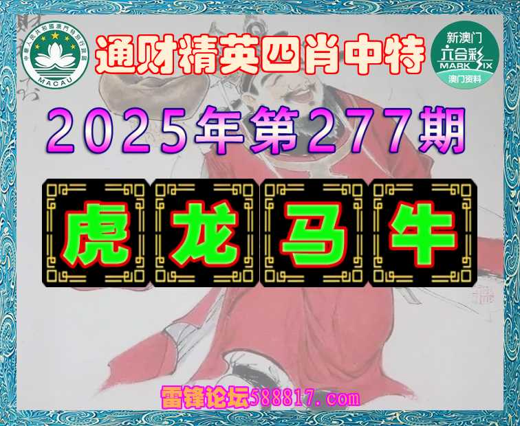277期: 🍔『通财精英』 🍔四肖中特🍔【.龙.马.牛】开:虎16