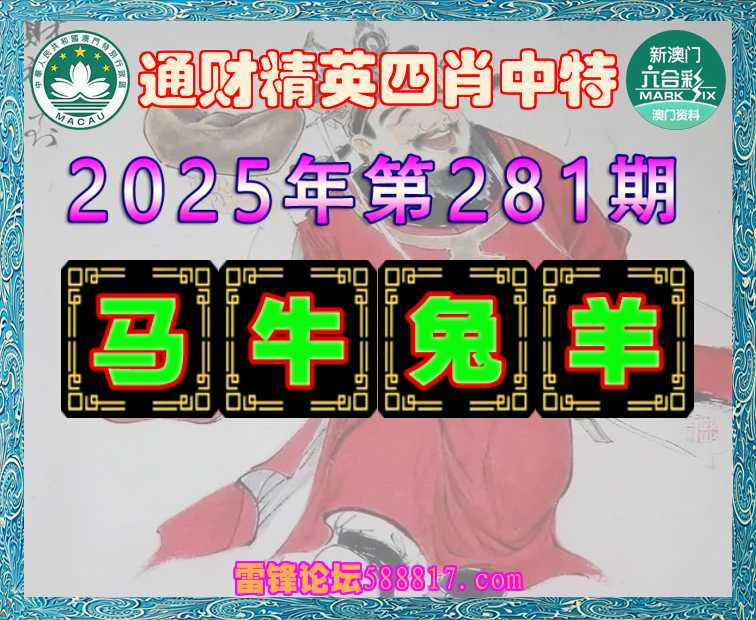 281期: 🍔『通财精英』 🍔四肖中特🍔【马.牛.兔.】开:羊47