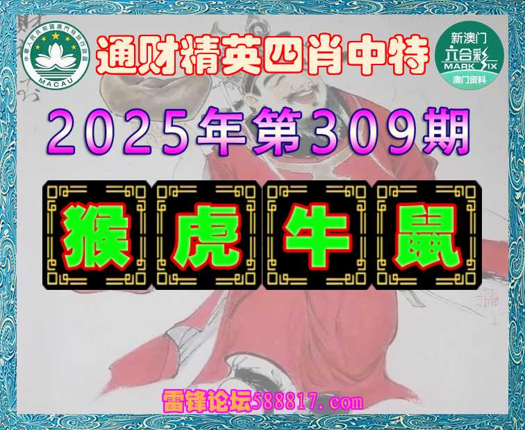 309期: 🍔『通财精英』 🍔四肖中特🍔【猴.虎.牛.】开:鼠06