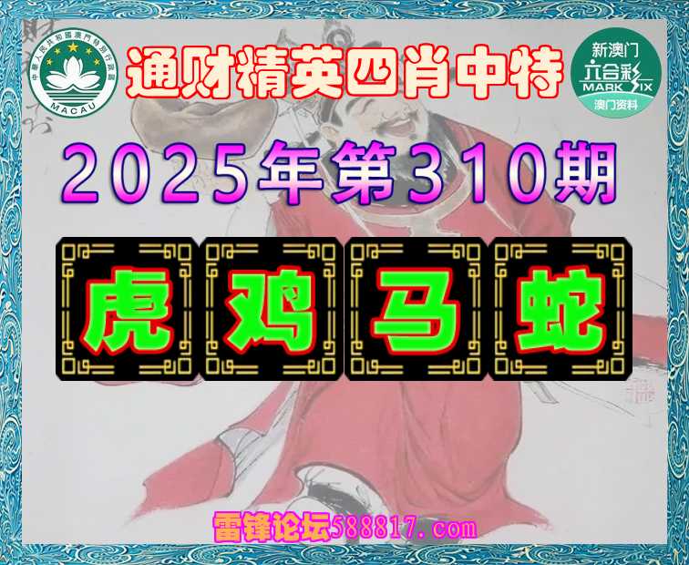 310期: 🍔『通财精英』 🍔四肖中特🍔【.鸡.马.蛇】开:虎16
