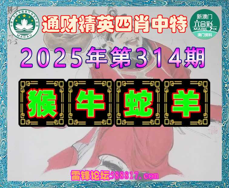 314期: 🍔『通财精英』 🍔四肖中特🍔【猴.牛.蛇.】开:羊23