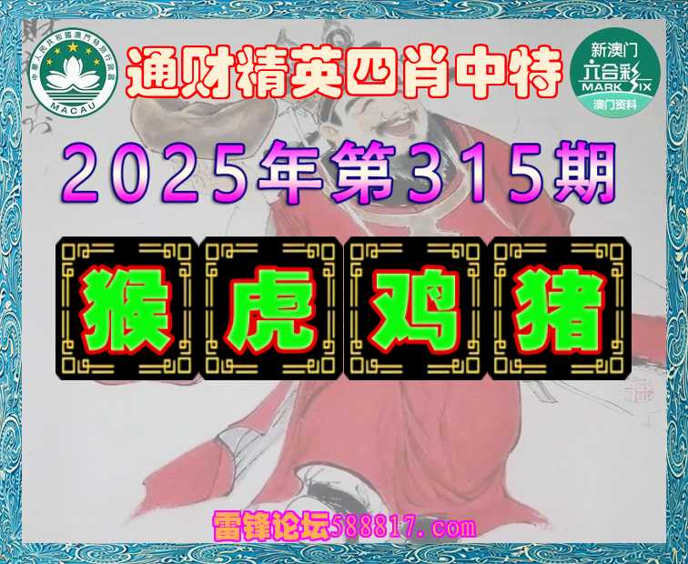 315期: 🍔『通财精英』 🍔四肖中特🍔【猴..鸡.猪】开:虎04