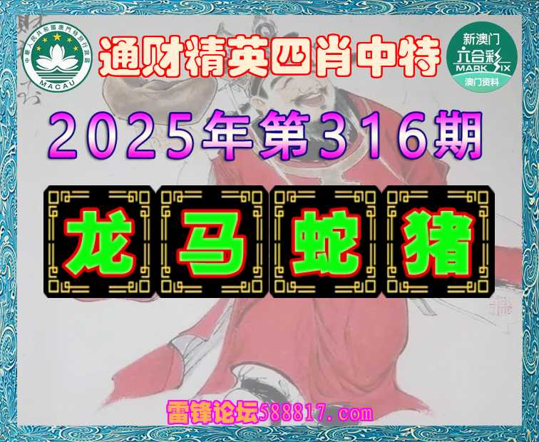 316期: 🍔『通财精英』 🍔四肖中特🍔【龙..蛇.猪】开:马24