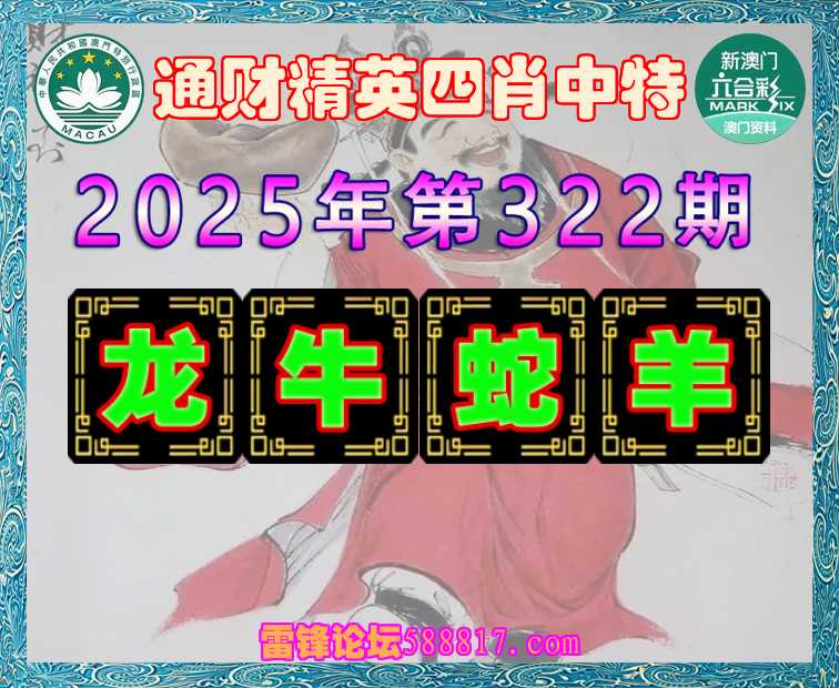 322期: 🍔『通财精英』 🍔四肖中特🍔【龙.牛.蛇.】开:羊47
