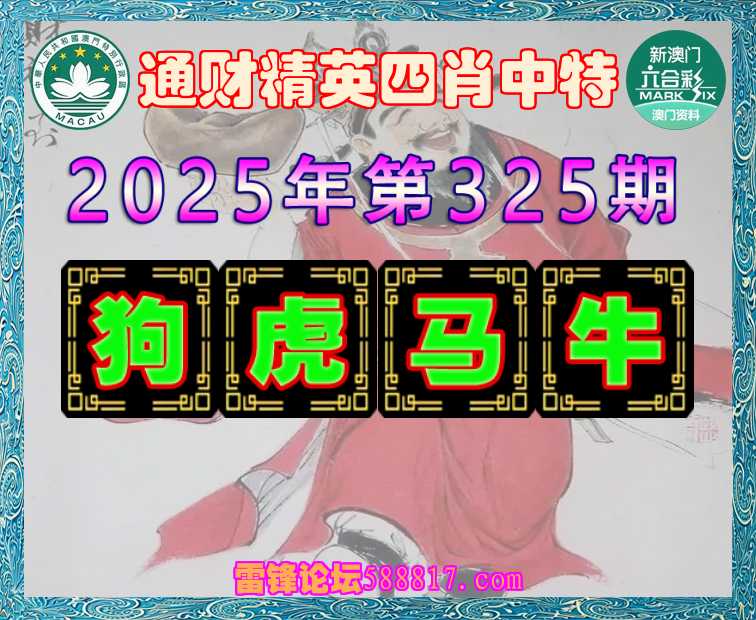 325期: 🍔『通财精英』 🍔四肖中特🍔【狗..马.牛】开:虎04