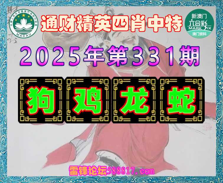 331期: 🍔『通财精英』 🍔四肖中特🍔【狗.鸡..蛇】开:龙26